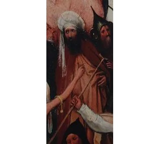 Теперь такой вопрос: верны ли её слова: “Ряд экзотически одетых фигур свидетельствует о том, что художник стремился показать падение не только западного христианского мира. Включив в свое изображение Восток, Босх демонстрирует всеобщность погони за сеном (богатством, золотом) всего человечества”?